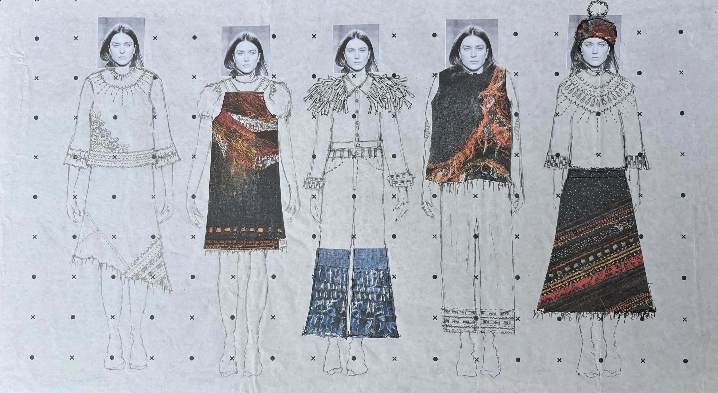 For this collection, I take influence from historical and cultural practices of reuse and repair - from wartime rationing in Britain to the Japanese traditions of mending - adapting their principles to address today’s challenges of textile waste.
